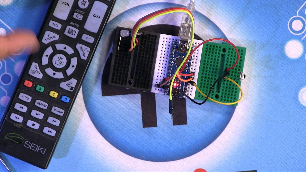 Use relays to turn groups of devices on and off using an IR remote control.