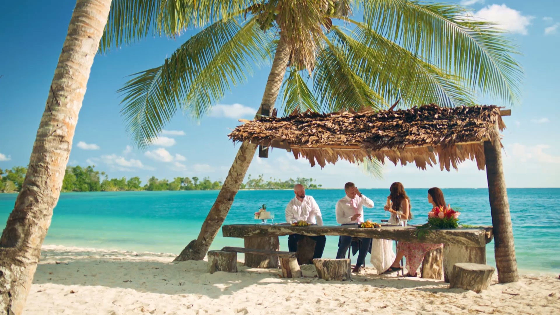 After a blissful honeymoon in Vanuatu it's time for the couples to meet each other for the first time at the pool party.